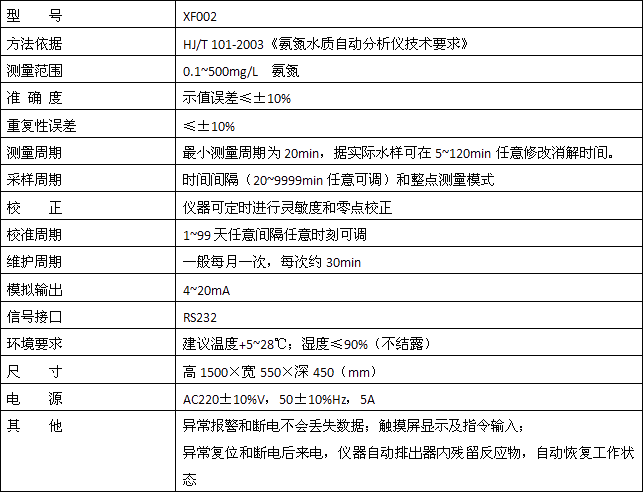 水樣和掩蔽劑混合后,以游離態(tài)的氨或銨離子等形成存在的氨氮,在堿性環(huán)境和增敏劑存在的情況下,與水楊酸顯色試劑反應(yīng)生成一種帶色絡(luò)合物,分析儀檢測此顏色的變化,并把這種變化換算成氨氮值輸出,生成的帶色絡(luò)合物量相當(dāng)于氨含量。